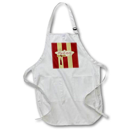3dRoseImage of Striped Design, Class of 2023, Diploma, Tassel, Red, Gold Apron is made of a 65/35 poly/cotton blend. Whether it is put to use in a restau...