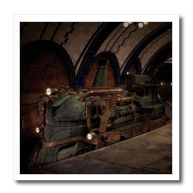 3dRose A Steampunk Train at a Modern Station - Iron on Heat Transfers (ht-376305)