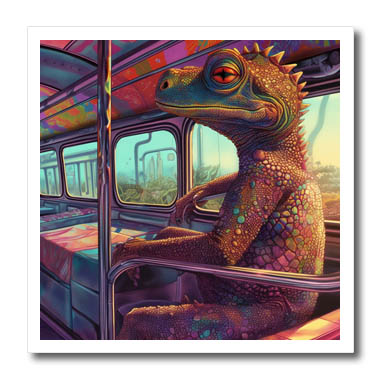 3dRose Cassie Peters AI Generated Art - The Lizard on The Bus - Iron on Heat Transfers (ht-381856)