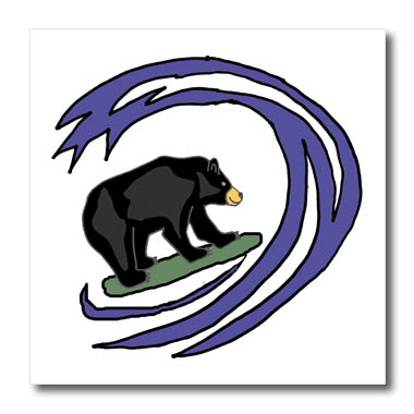 3dRose Cute Funny Black Bear Surfing at The Beach Nature... - Iron on Heat Transfers (ht-383188)