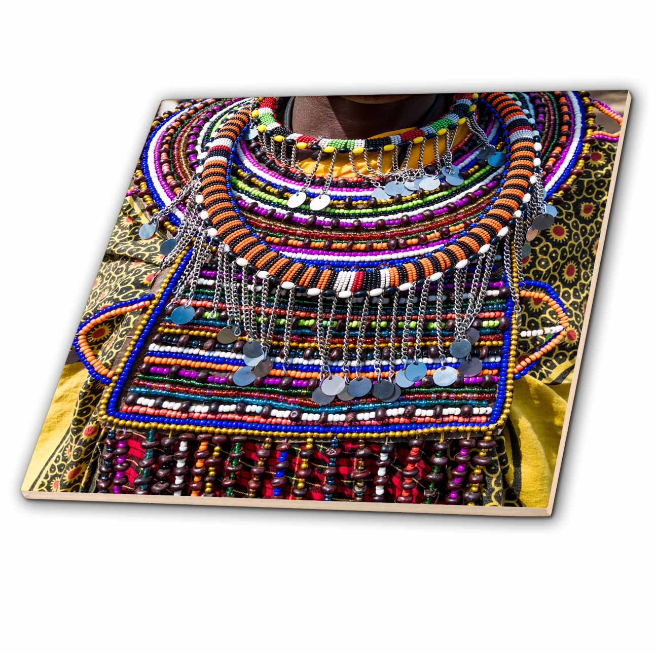 3dRose Danita Delimont - Jewelry - Africa, Kenya, Masai Mara National Reserve, Masai Tribal Necklace. - Tiles