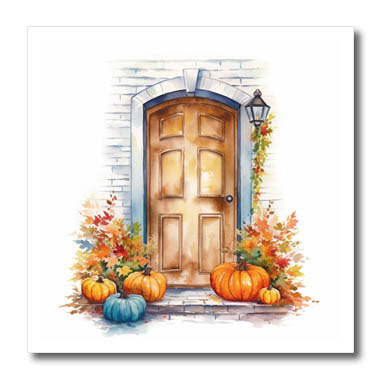 Fall Front Door Illustration Iron on Heat Transfer is a great way to jazz up a plain T-shirt, pillow case or any other light colored fabric. The transfer is transparent and should be applied only to white or light colored material suitable to withstand high heat. Available in 6", 8" and 10". Color not true until transferred; home iron instructions included. Wash inside out using mild detergent and dry on low heat. Made in USA.