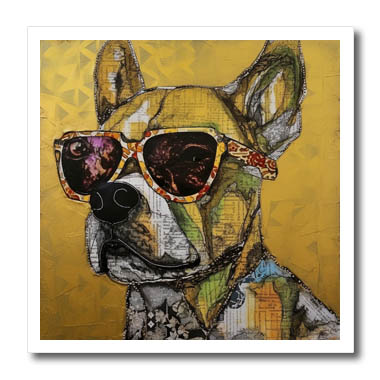 3dRose French Bulldog in Sunglasses Mixed Media Collage - Iron on Heat Transfers (ht-381861)