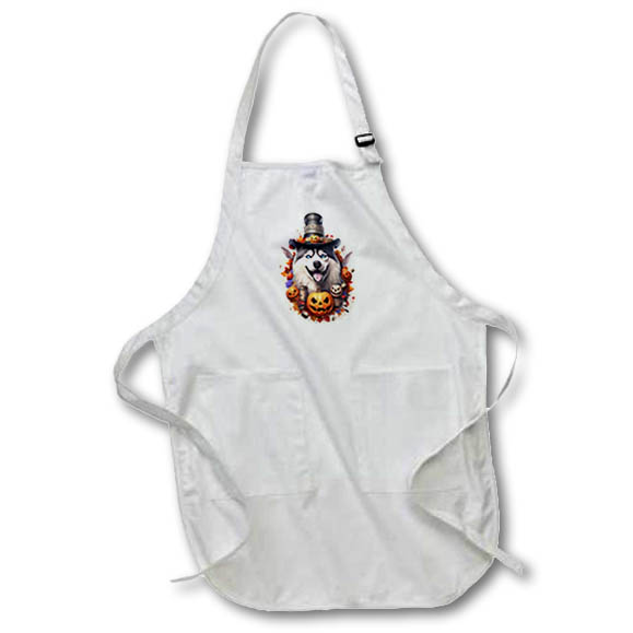Halloween Siberian Husky dressed as a magic wizard Apron is made of a 65/35 poly/cotton blend. Whether it is put to use in a restaurant or at home, this apron will always help to keep you clean. Full length features adjustable neck strap. Medium length features non-adjustable neck strap that fits over your head. Both sizes also tie around the waist.