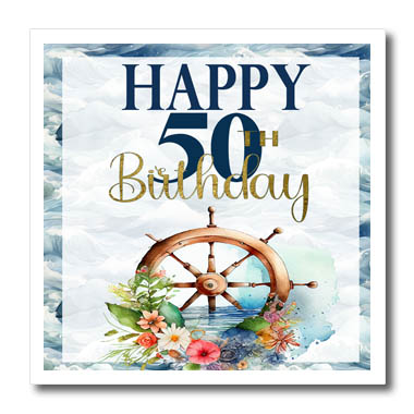 3dRose Happy 50th Birthday Pretty Nautical Floral Sailing Wheel - Iron on Heat Transfers (ht-382130)