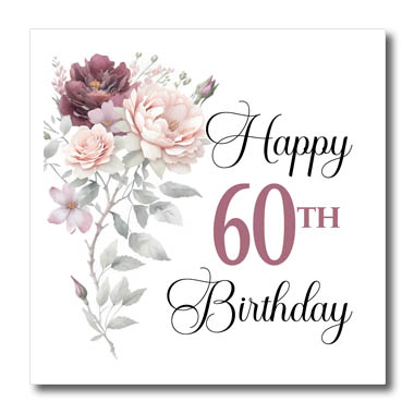 3dRose Happy 60th Birthday Blush Pink and Burgundy Flower - Iron on Heat Transfers (ht-382107)