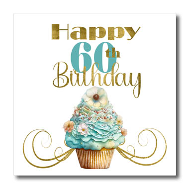 3dRose Happy 60th Birthday Pretty Aqua Cupcake - Iron on Heat Transfers (ht-382145)