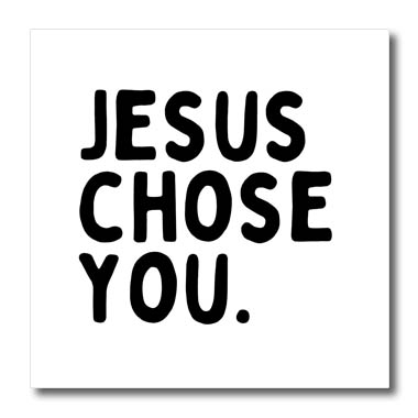 Jesus Chose You Christian Sayings Iron on Heat Transfer is a great way to jazz up a plain T-shirt, pillow case or any other light colored fabric. The transfer is transparent and should be applied only to white or light colored material suitable to withstand high heat. Available in 6", 8" and 10". Color not true until transferred; home iron instructions included. Wash inside out using mild detergent and dry on low heat. Made in USA.