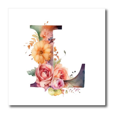 3dRose Pretty Image of Watercolor Floral Monogram Initial L - Iron on Heat Transfers (ht-383778)