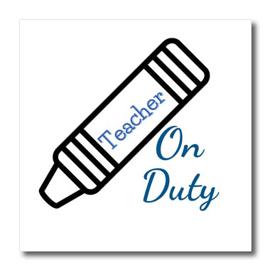 Text of Teacher On Duty Iron on Heat Transfer is a great way to jazz up a plain T-shirt, pillow case or any other light colored fabric. The transfer is transparent and should be applied only to white or light colored material suitable to withstand high heat. Available in 6", 8" and 10". Color not true until transferred; home iron instructions included. Wash inside out using mild detergent and dry on low heat. Made in USA.