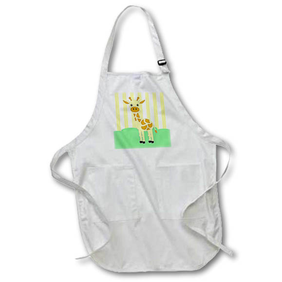 Baby Animals – Giraffe Apron is made of a 65/35 poly/cotton blend. Whether it is put to use in a restaurant or at home, this apron will always help to keep you clean. Full length features adjustable neck strap. Medium length features non-adjustable neck strap that fits over your head. Both sizes also tie around the waist.