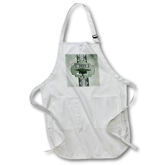 Apron - Image of Class of 2023, Graduation Cap, Diploma, Tag, Ribbon,Green Graduation Design