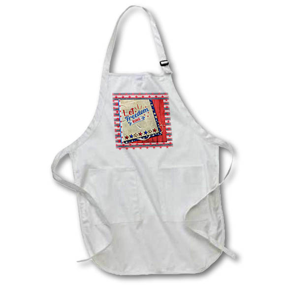 Apron - Image of Let Freedom Ring, Stars, Ribbons, Stripes,on Wood, Red, Blue Independence Day