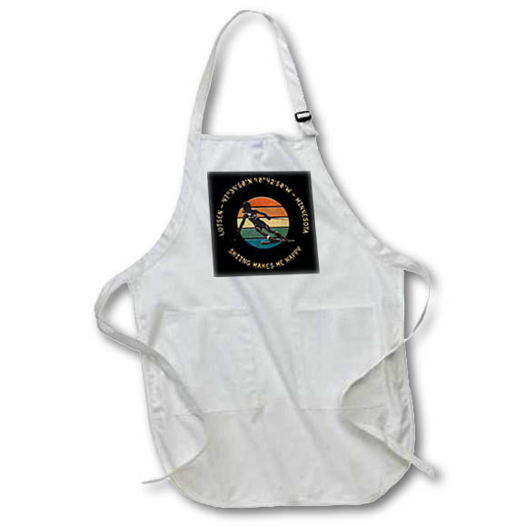 Apron - Lutsen, Minnesota. Woman skier. Yellow, black. Downhill skiing gift Alexis Design - American Skiing Places