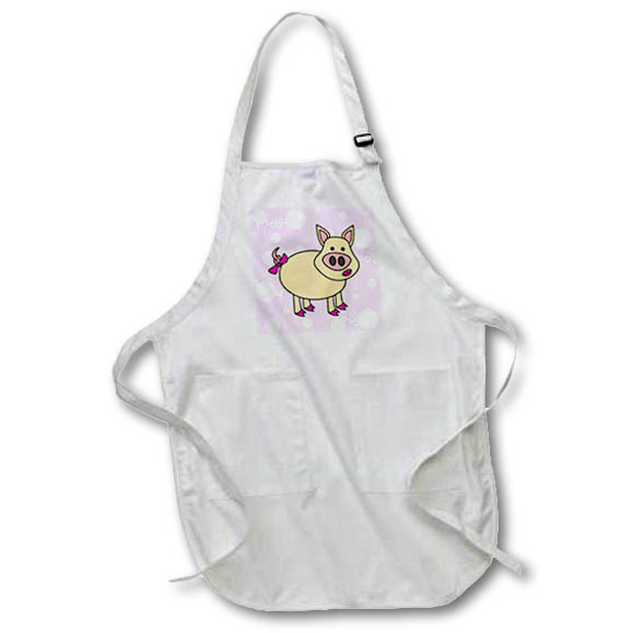 Pink Piggy Design – Happy Girl Pig Apron is made of a 65/35 poly/cotton blend. Whether it is put to use in a restaurant or at home, this apron will always help to keep you clean. Full length features adjustable neck strap. Medium length features non-adjustable neck strap that fits over your head. Both sizes also tie around the waist.