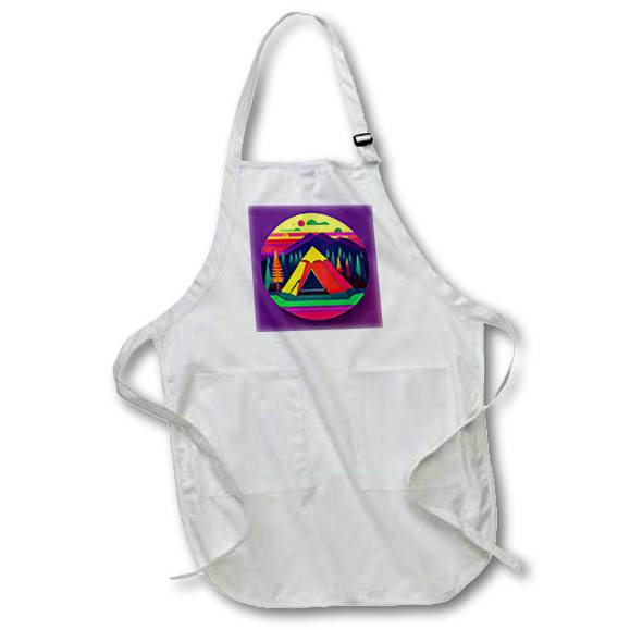 Apron - Round design of a yellow and red tent, purple mountains. Happy camper Alexis Design - Happy Camper