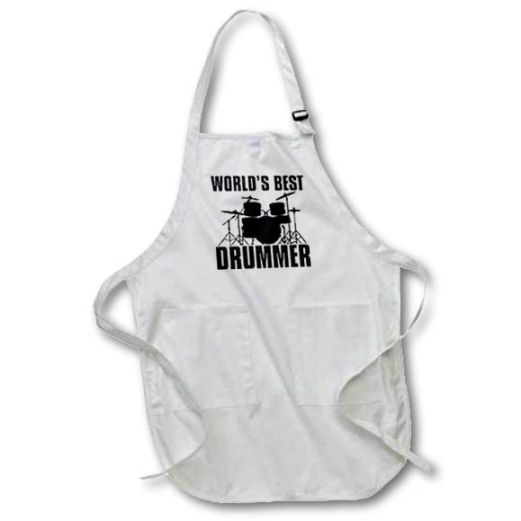 Worlds Best Drummer Apron is made of a 65/35 poly/cotton blend. Whether it is put to use in a restaurant or at home, this apron will always help to keep you clean. Full length features adjustable neck strap. Medium length features non-adjustable neck strap that fits over your head. Both sizes also tie around the waist.