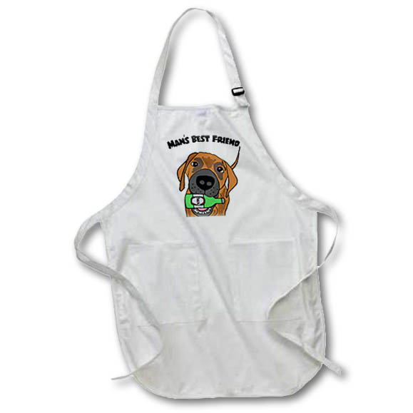 Cute funny Mans Best Friend Rescue Dog bringing Beer Drinking Apron is made of a 65/35 poly/cotton blend. Whether it is put to use in a restaurant or at home, this apron will always help to keep you clean. Full length features adjustable neck strap. Medium length features non-adjustable neck strap that fits over your head. Both sizes also tie around the waist.