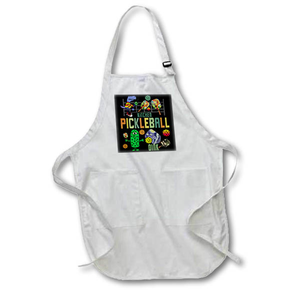 Apron - Cute Funny Pickleball Sports Abstract with Pickle, Paddles and Net Sports and Hobbies