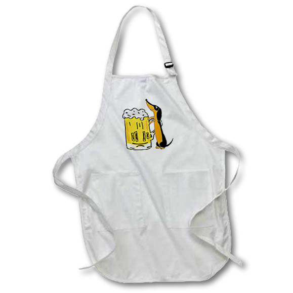 Funny Cute Dachshund Puppy Dog Drinking Beer Dachshund Lover Apron is made of a 65/35 poly/cotton blend. Whether it is put to use in a restaurant or at home, this apron will always help to keep you clean. Full length features adjustable neck strap. Medium length features non-adjustable neck strap that fits over your head. Both sizes also tie around the waist.