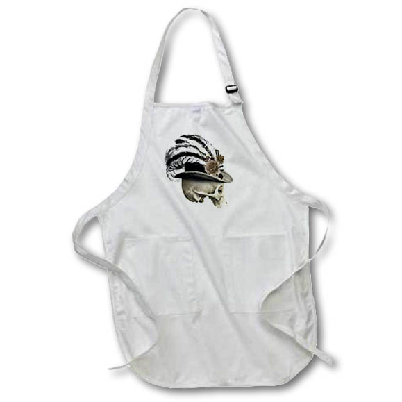 Lady Skull With A Floral and Feather Hat Illustration Apron is made of a 65/35 poly/cotton blend. Whether it is put to use in a restaurant or at home, this apron will always help to keep you clean. Full length features adjustable neck strap. Medium length features non-adjustable neck strap that fits over your head. Both sizes also tie around the waist.