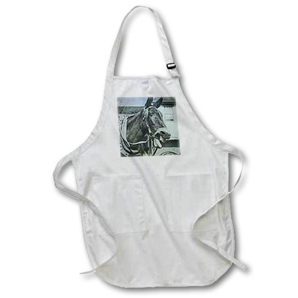 Magic Lantern Slide Neighing Donkey Apron is made of a 65/35 poly/cotton blend. Whether it is put to use in a restaurant or at home, this apron will always help to keep you clean. Full length features adjustable neck strap. Medium length features non-adjustable neck strap that fits over your head. Both sizes also tie around the waist.