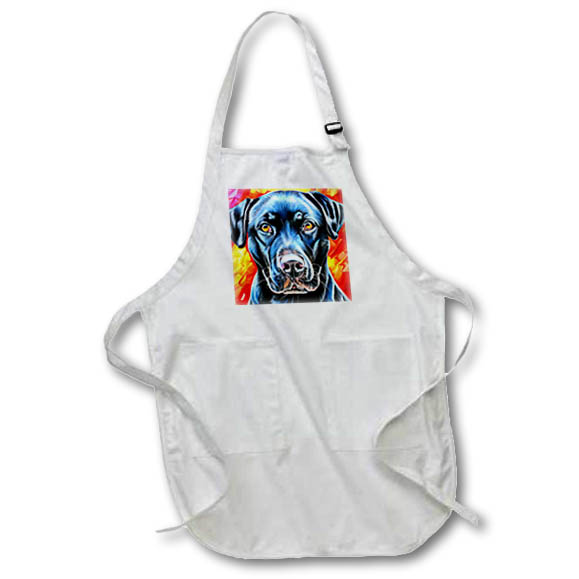 Apron - Black Labrador Retriever dog on red and yellow digital art home decor Alexis Design - Animals Dogs Labrador Retriever