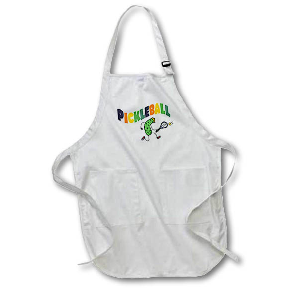 Apron - Cute Funny Cool Pickle Pickleball Player with Colorful Wavy Text Sports and Hobbies