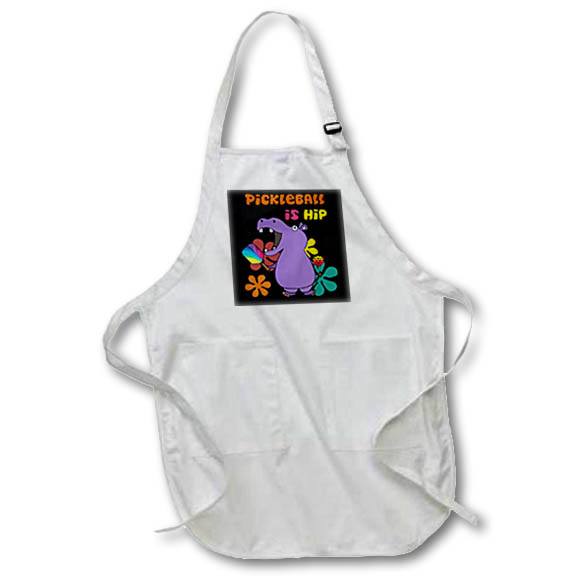 Apron - Cute Funny Hippo Playing Pickleball Sports Pickleball is Hip Pun Sports and Hobbies