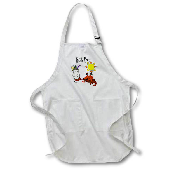 Apron - Funny Cute Beach Bum Pun with Crab drinking Pina Colada Cartoon Funny