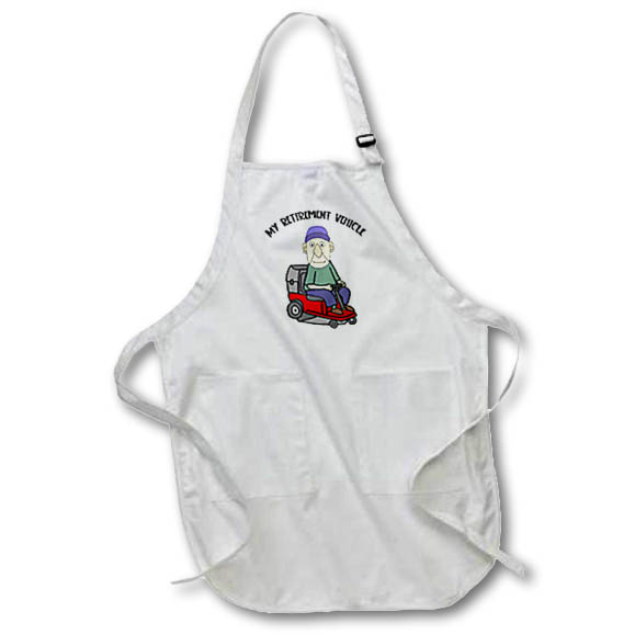 Apron - Funny Cute Old Man on Riding Lawn Mower My Retirement Vehicle Mowing Sports and Hobbies