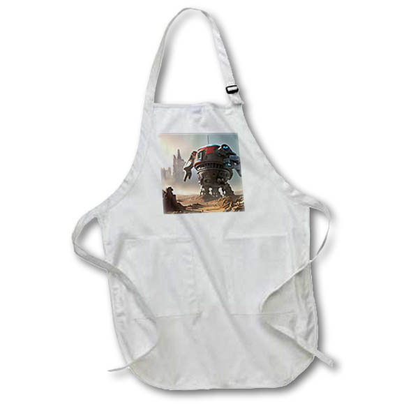 Giant industrial robot in Mars desert on a sunny day digital art Apron is made of a 65/35 poly/cotton blend. Whether it is put to use in a restaurant or at home, this apron will always help to keep you clean. Full length features adjustable neck strap. Medium length features non-adjustable neck strap that fits over your head. Both sizes also tie around the waist.