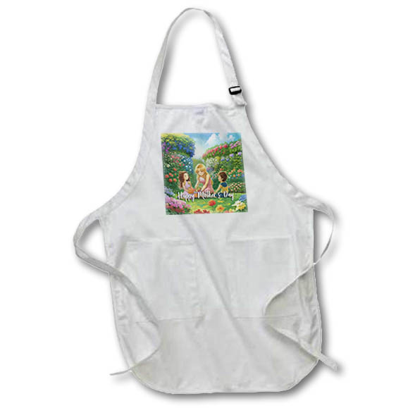 Apron - Happy Mothers Day text, ,other, son, daughter sit on the grass gift Alexis Design - Holidays Mothers Day