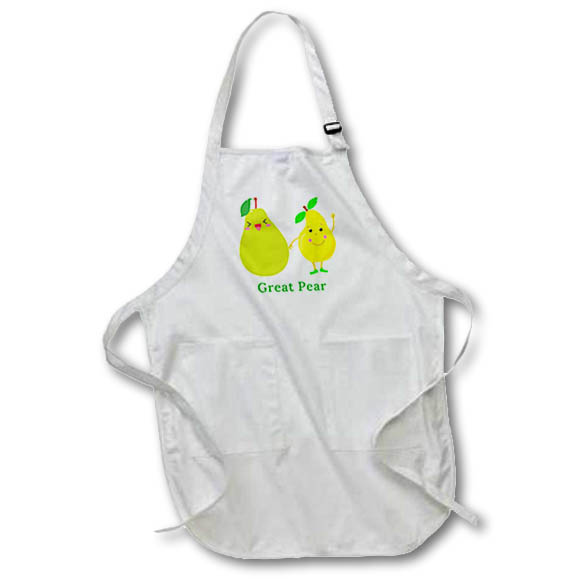 Image of Cute Pears Apron is made of a 65/35 poly/cotton blend. Whether it is put to use in a restaurant or at home, this apron will always help to keep you clean. Full length features adjustable neck strap. Medium length features non-adjustable neck strap that fits over your head. Both sizes also tie around the waist.