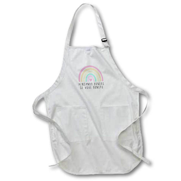 Apron - Pensando Bonito Se Vive Bonito Inspiring Spanish Quote Think Positive Boho Rainbow