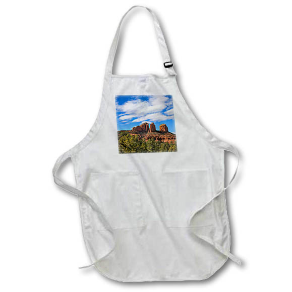 Sedona, Arizona, USA. Cathedral Rock, red rock formations 4. Apron is made of a 65/35 poly/cotton blend. Whether it is put to use in a restaurant or at home, this apron will always help to keep you clean. Full length features adjustable neck strap. Medium length features non-adjustable neck strap that fits over your head. Both sizes also tie around the waist.