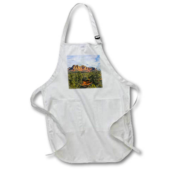 Sedona, Arizona, USA. Sedona red rocks formations Apron is made of a 65/35 poly/cotton blend. Whether it is put to use in a restaurant or at home, this apron will always help to keep you clean. Full length features adjustable neck strap. Medium length features non-adjustable neck strap that fits over your head. Both sizes also tie around the waist.