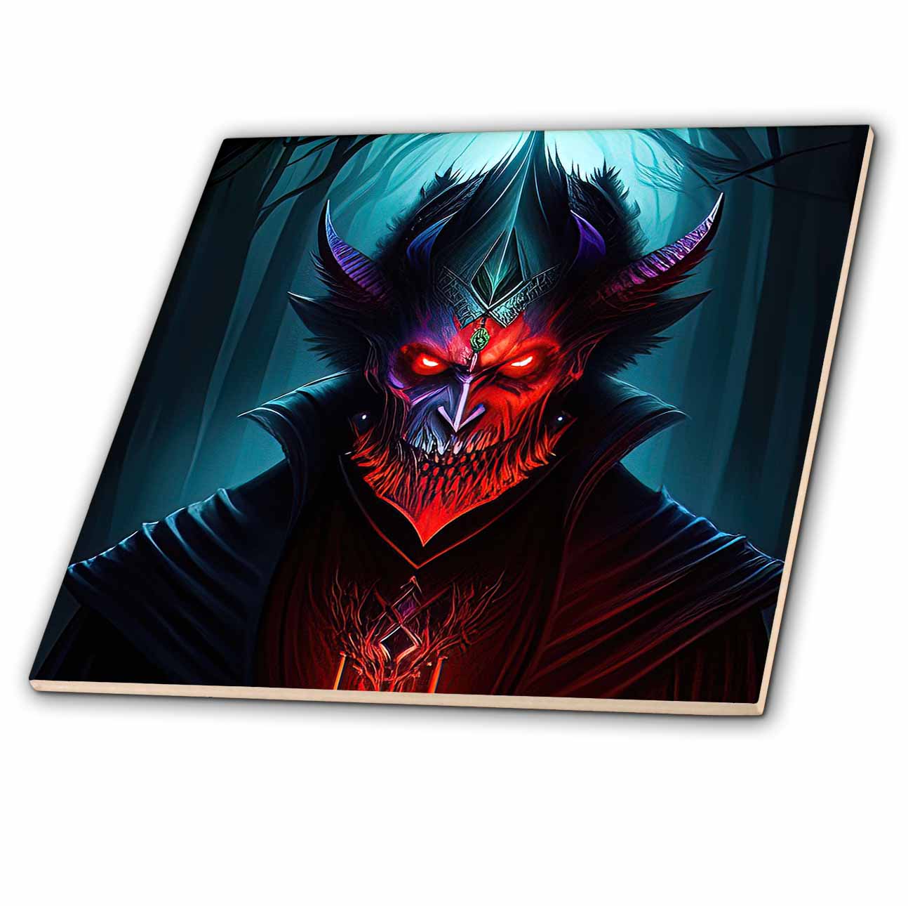 Tile - Horned Monster in Blue and Red in The Magical Forest - 3dRose Collection