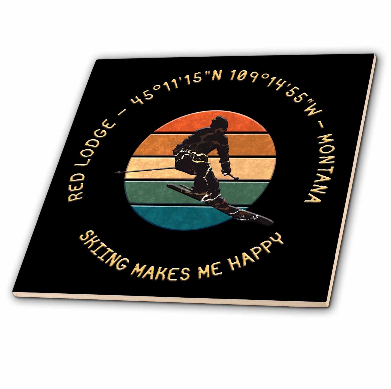 Red Lodge, Montana. Man skier. Yellow, black. Alpine skiing cool gift Tile is great for a backsplash, countertop or as an accent. This commercial quality construction grade tile has a high gloss finish. The image is applied to the top surface and can be cleaned with a mild detergent.