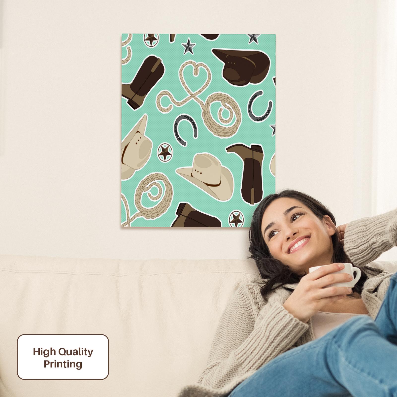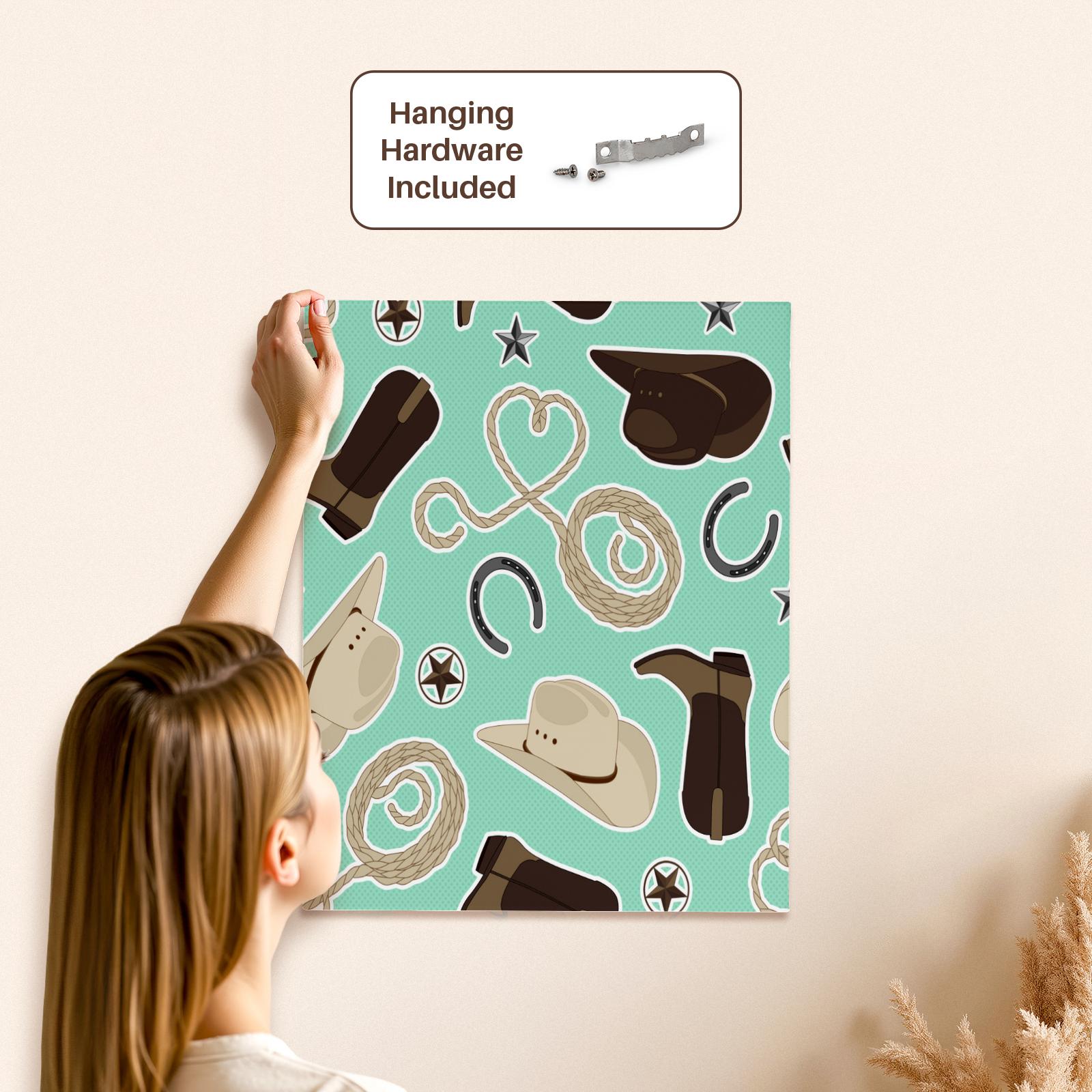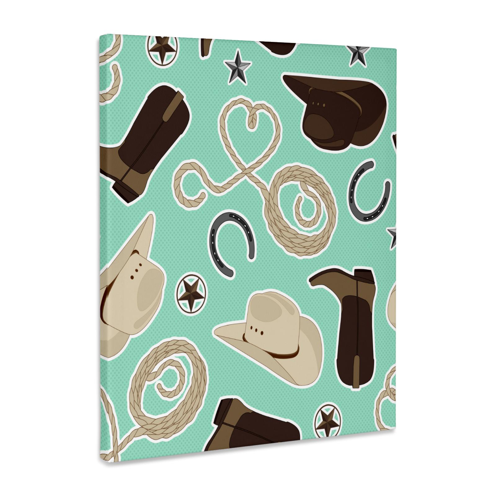 3dRose Cute Cowboy Theme Pattern Mint and Brown - Museum Grade Canvas Wrap (cw_192879)