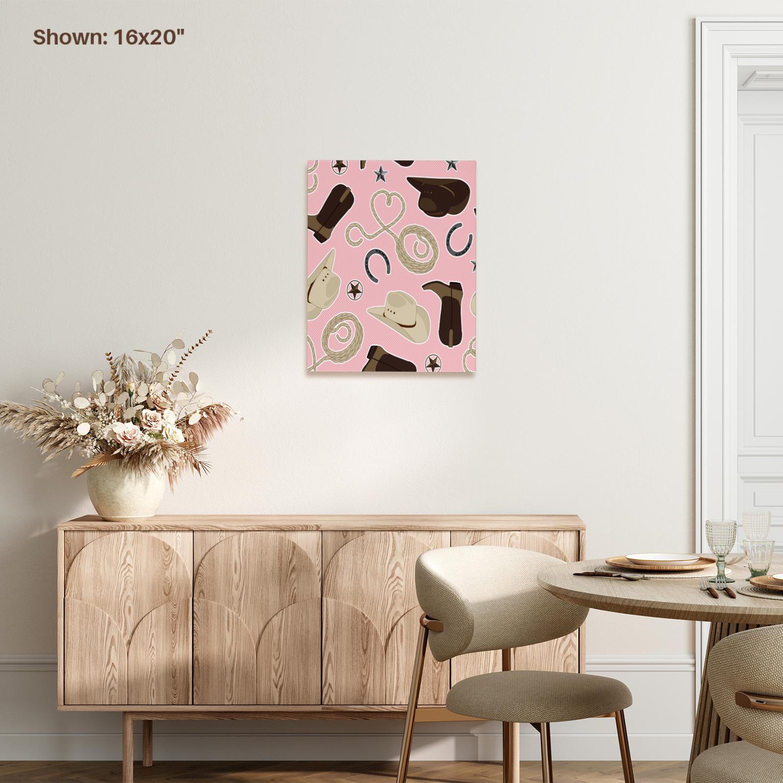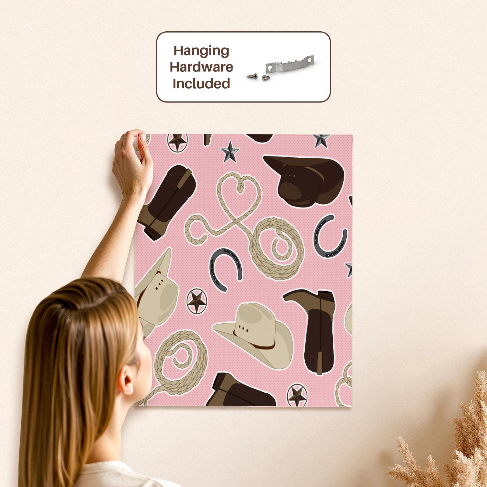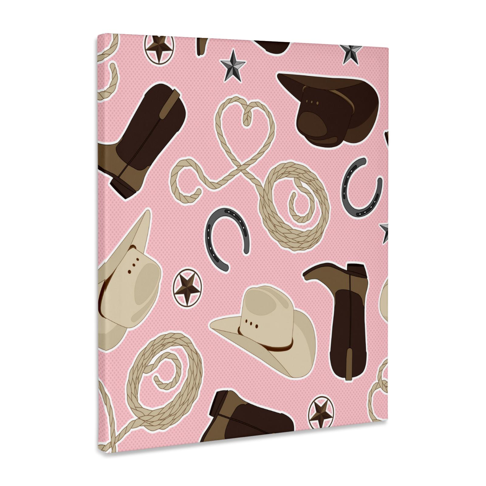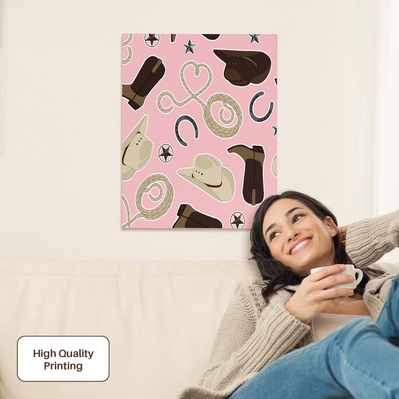 3dRose Cute Cowboy Theme Pattern Pink and Brown - Museum Grade Canvas Wrap (cw_192878)