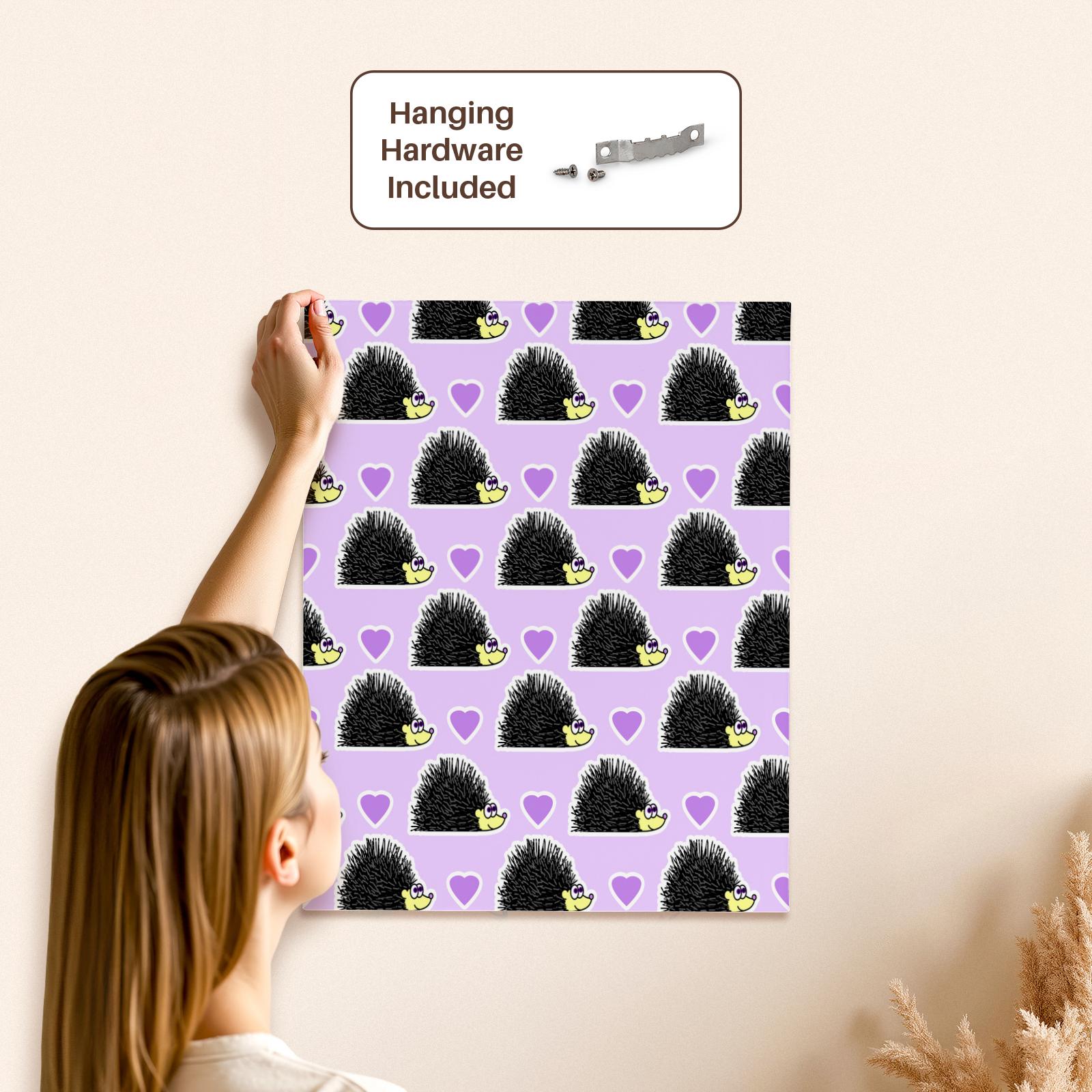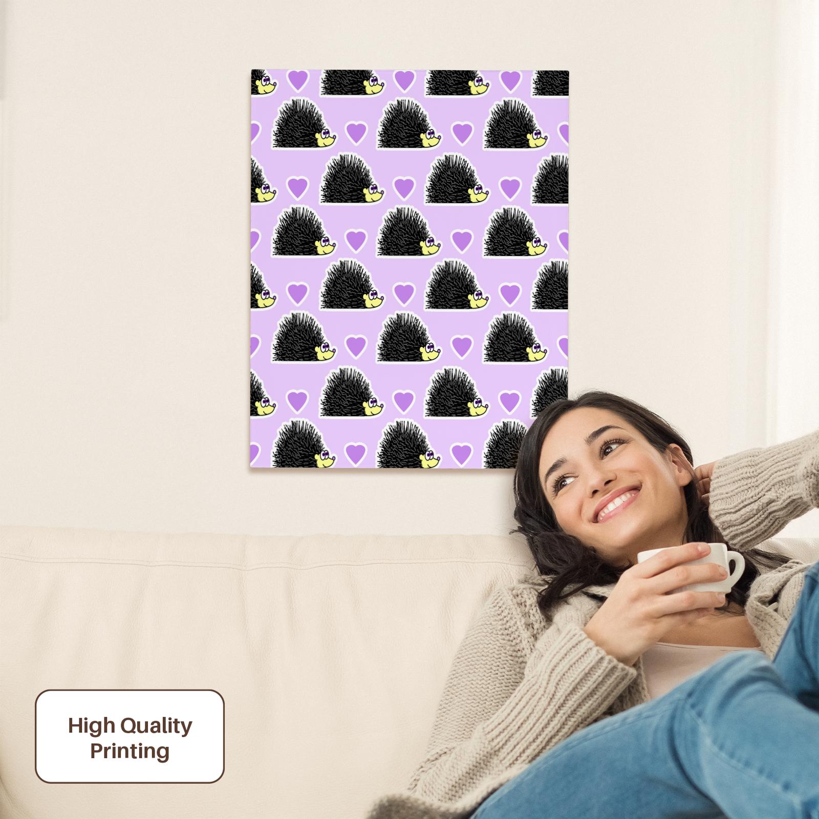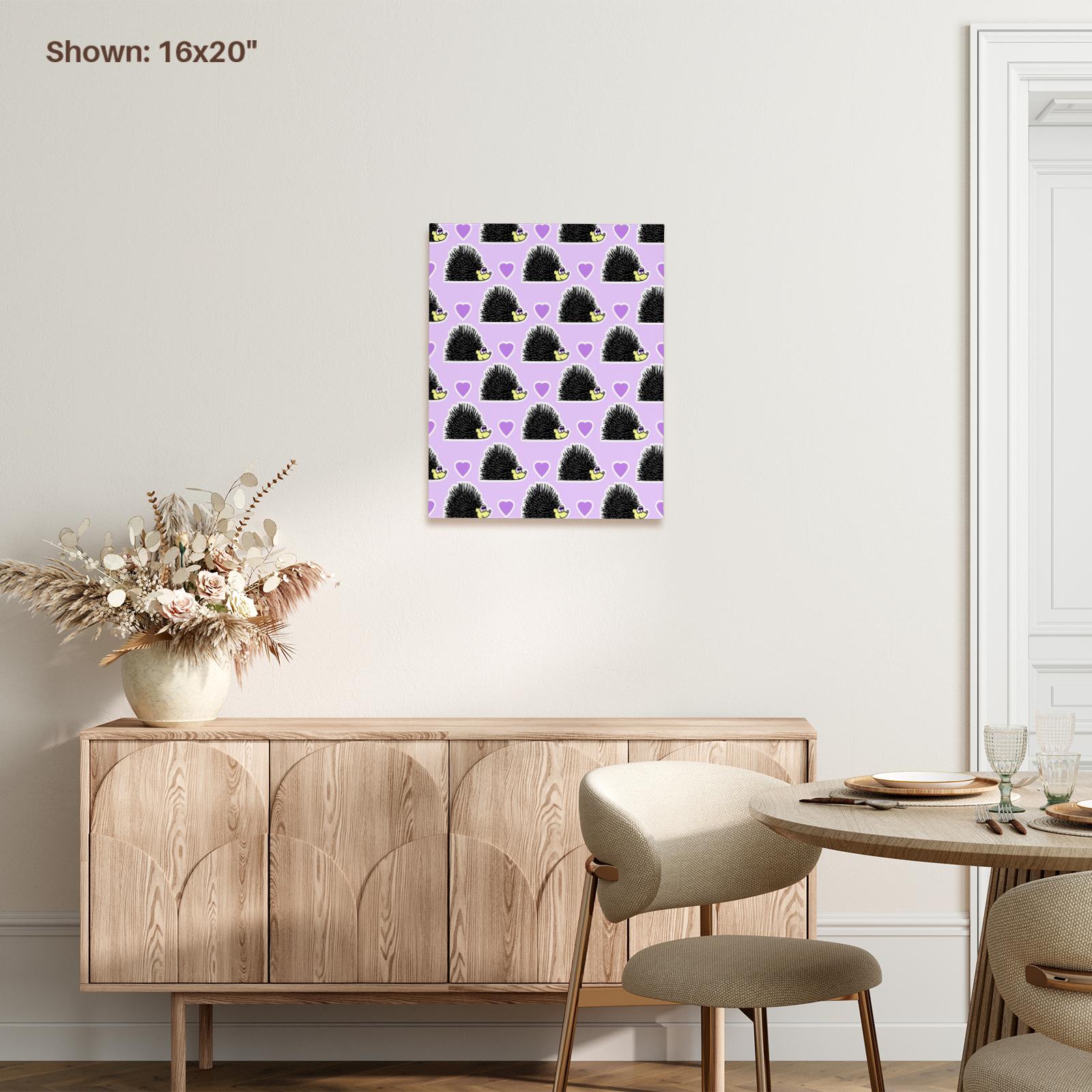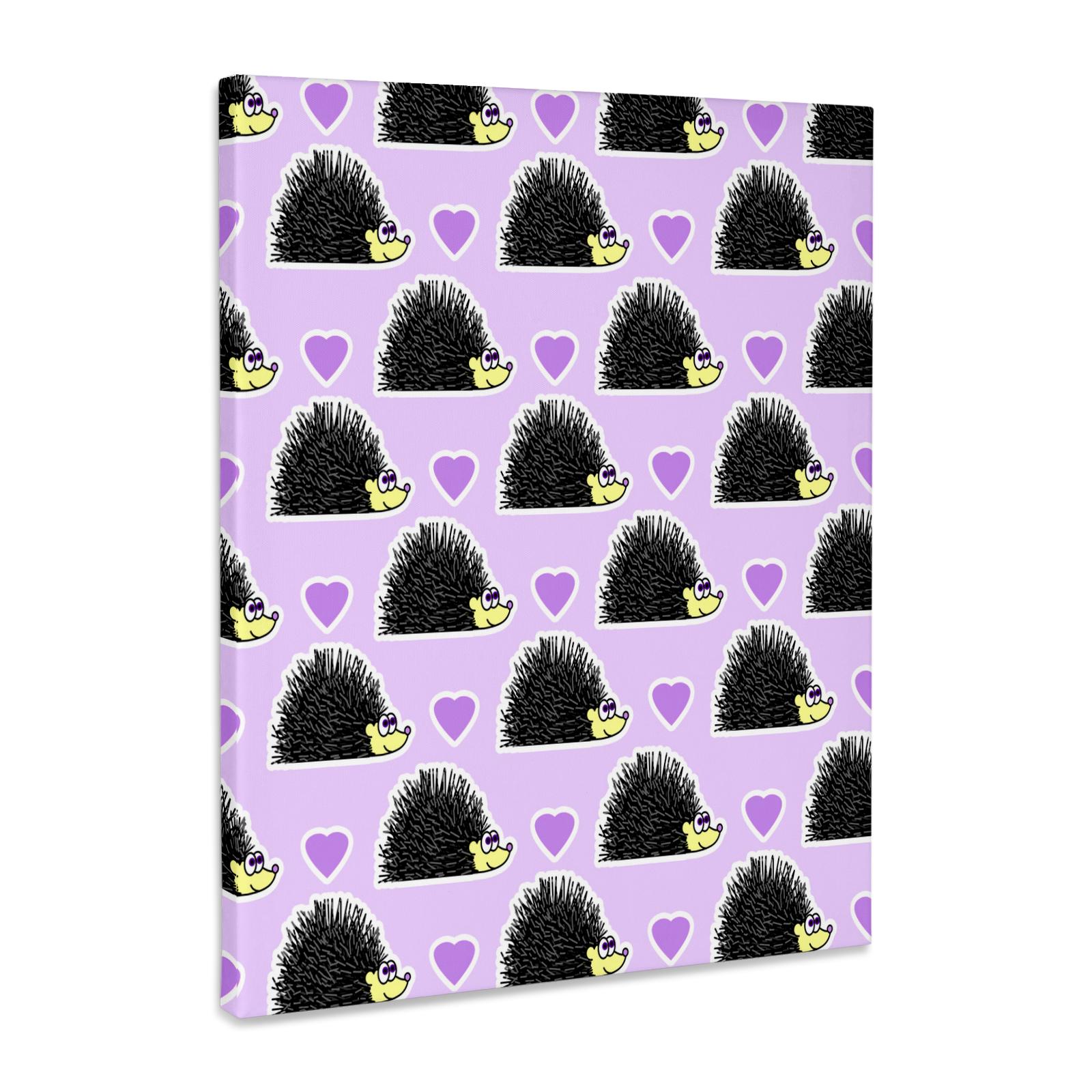 3dRose Cute Hedgehog and Hearts Purple Print - Museum Grade Canvas Wrap (cw_165853)