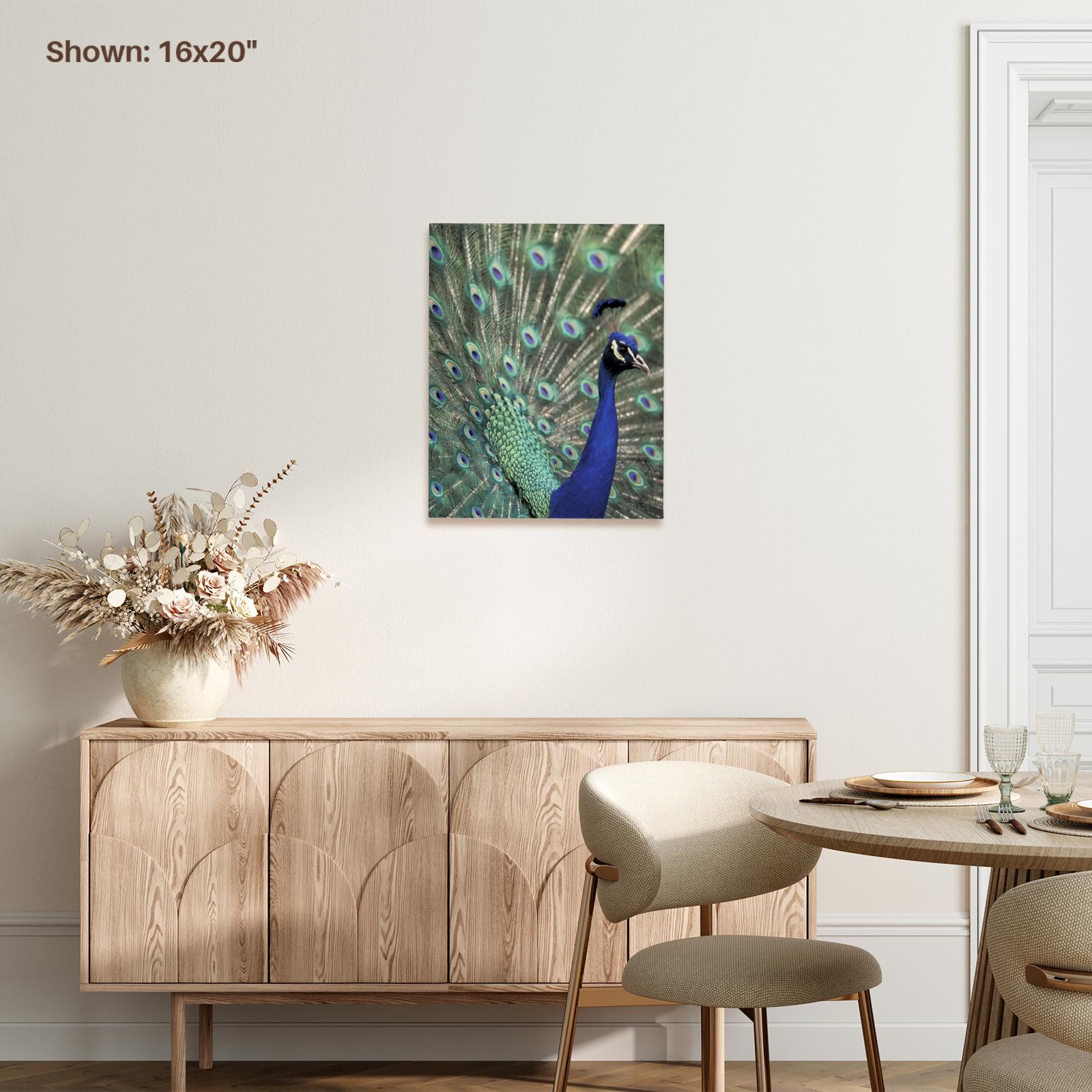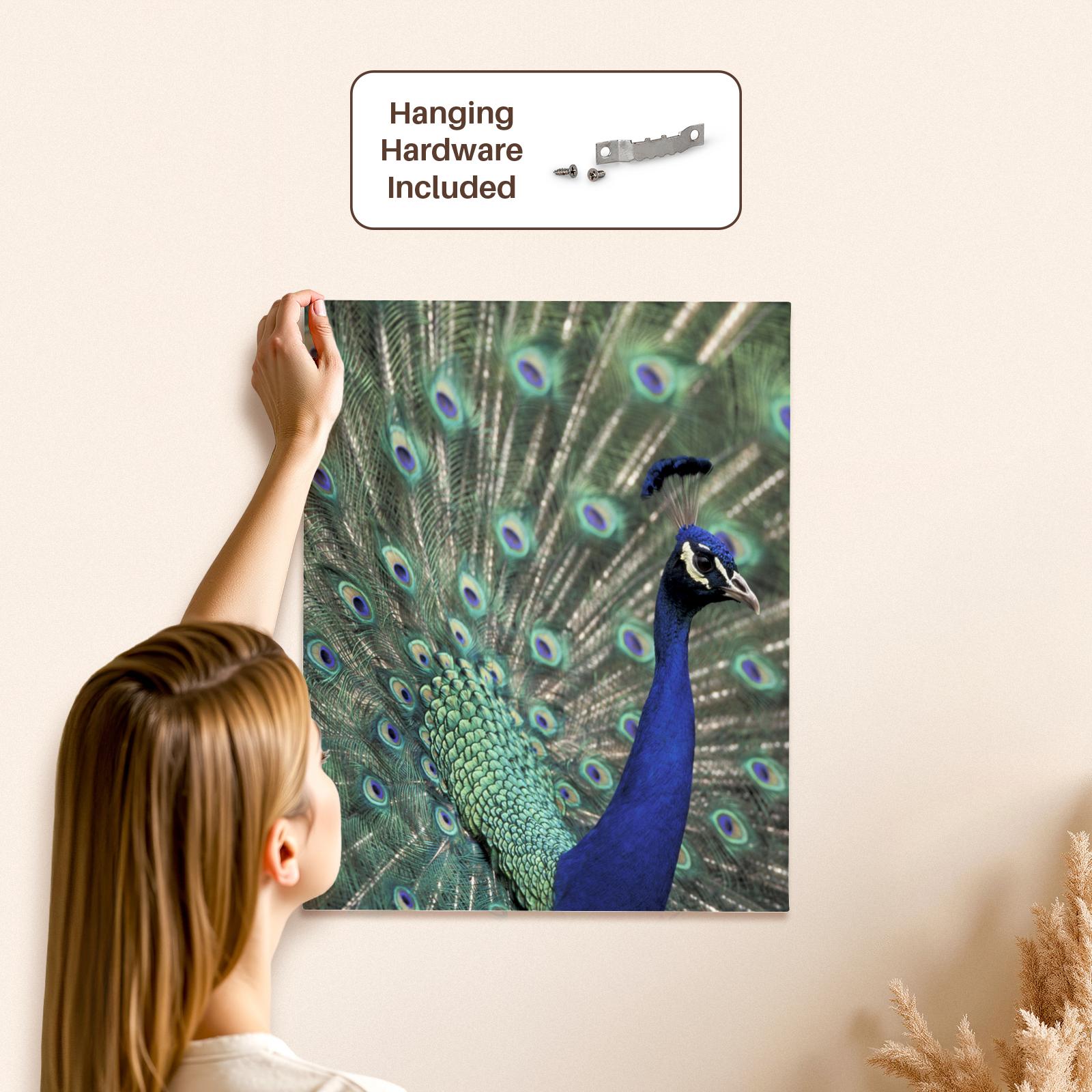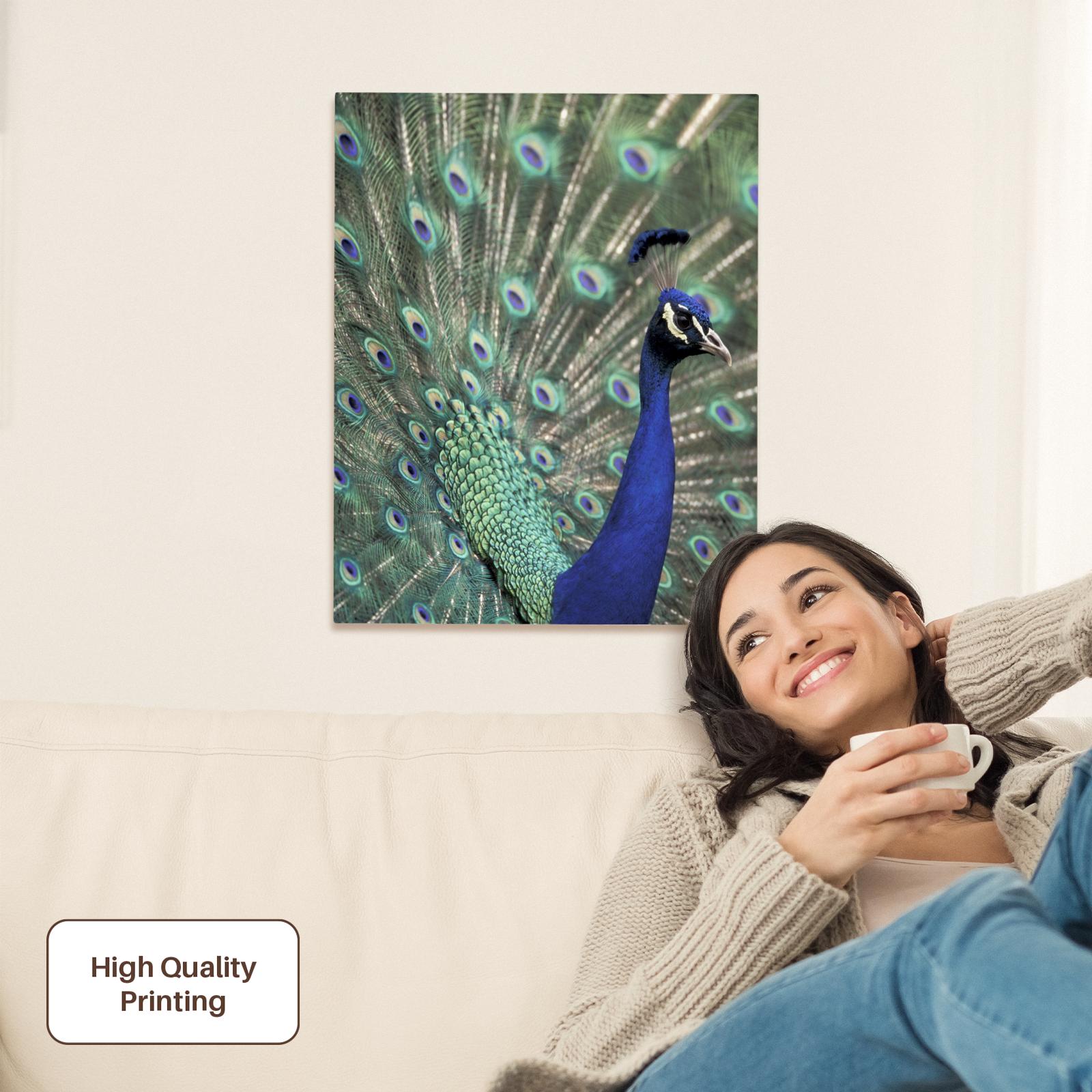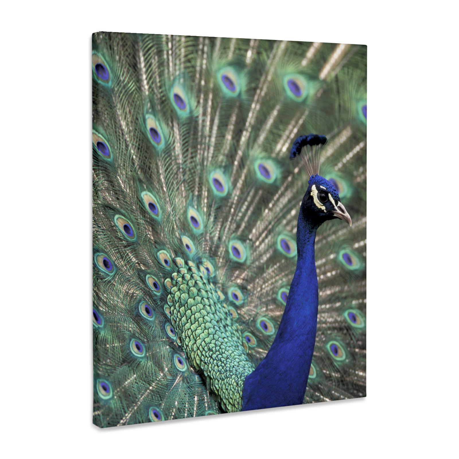 Male peacock bird displaying feathers for female - NA02 AJE0233 - Adam Jones Museum Grade Canvas Wrap is taking the printmaking world by storm with visually stunning color reproduction and long lasting archival properties. Known industry-wide for its consistency, premium canvas wrap exhibits exceptional quality utilizing ultra-high definition printing. Professionally stretched over a sturdy 1.2" wooden frame this canvas wrap will last a lifetime. Canvas Wraps offer a beautiful addition to your wall art collection. Unlike traditional photographs and prints our high quality canvas material has a UVA-protected coating that prevents fading. 3dRose canvas wrap is well suited as a personal home decor, that can be used in your living room, bedroom, kitchen, bathroom, or office. Great as a personalized memories gift at a wedding, anniversary, birthday, or any other event worth remembering which will be cherished for a lifetime. 3dRose canvas wrap is proudly manufactured in USA offering unmatched quality.