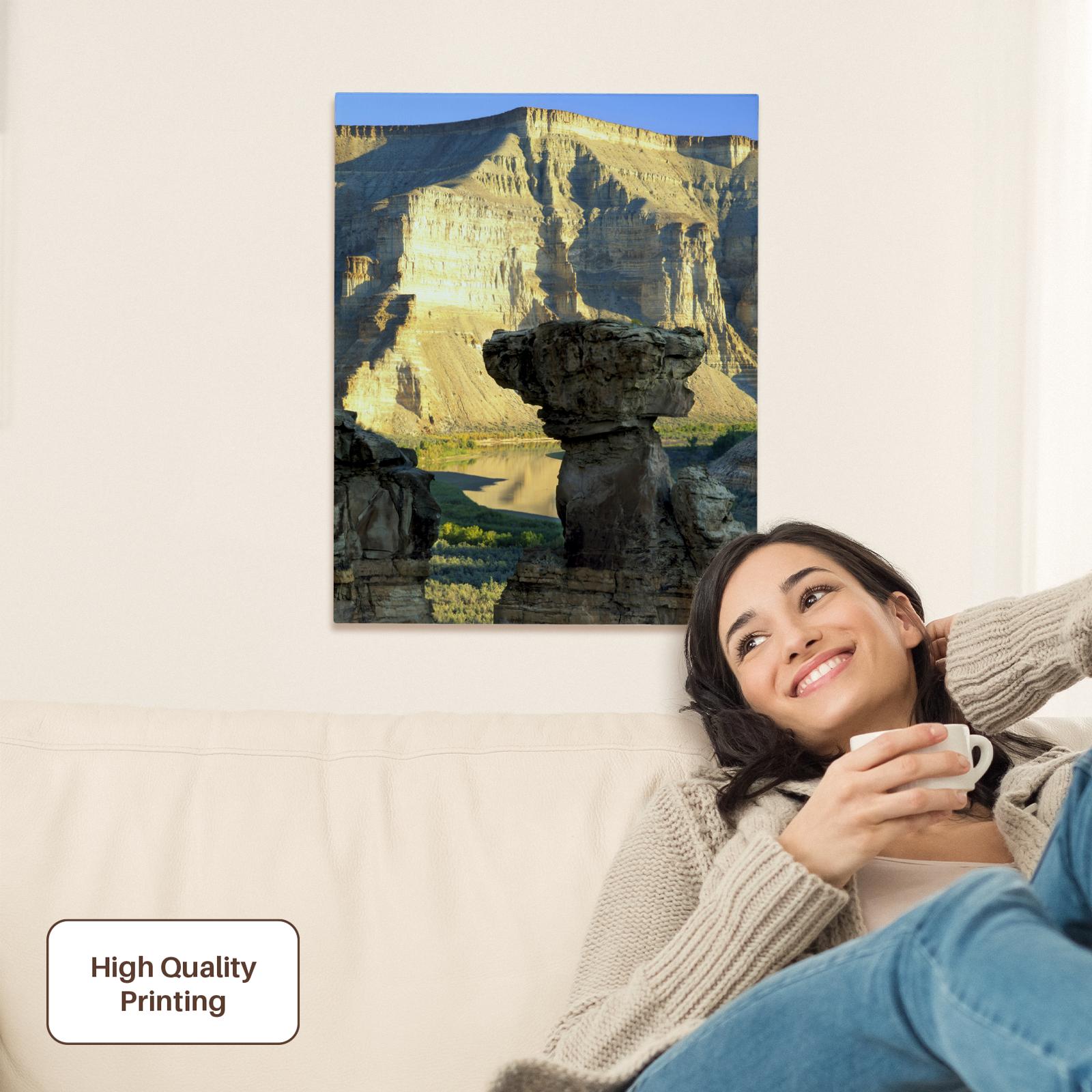 Mushroom rock, Green River, Desolation Canyon Utah - US45 SSM0306 - Scott T. Smith Museum Grade Canvas Wrap is taking the printmaking world by storm with visually stunning color reproduction and long lasting archival properties. Known industry-wide for its consistency, premium canvas wrap exhibits exceptional quality utilizing ultra-high definition printing. Professionally stretched over a sturdy 1.2" wooden frame this canvas wrap will last a lifetime. Canvas Wraps offer a beautiful addition to your wall art collection. Unlike traditional photographs and prints our high quality canvas material has a UVA-protected coating that prevents fading. 3dRose canvas wrap is well suited as a personal home decor, that can be used in your living room, bedroom, kitchen, bathroom, or office. Great as a personalized memories gift at a wedding, anniversary, birthday, or any other event worth remembering which will be cherished for a lifetime. 3dRose canvas wrap is proudly manufactured in USA offering unmatched quality.