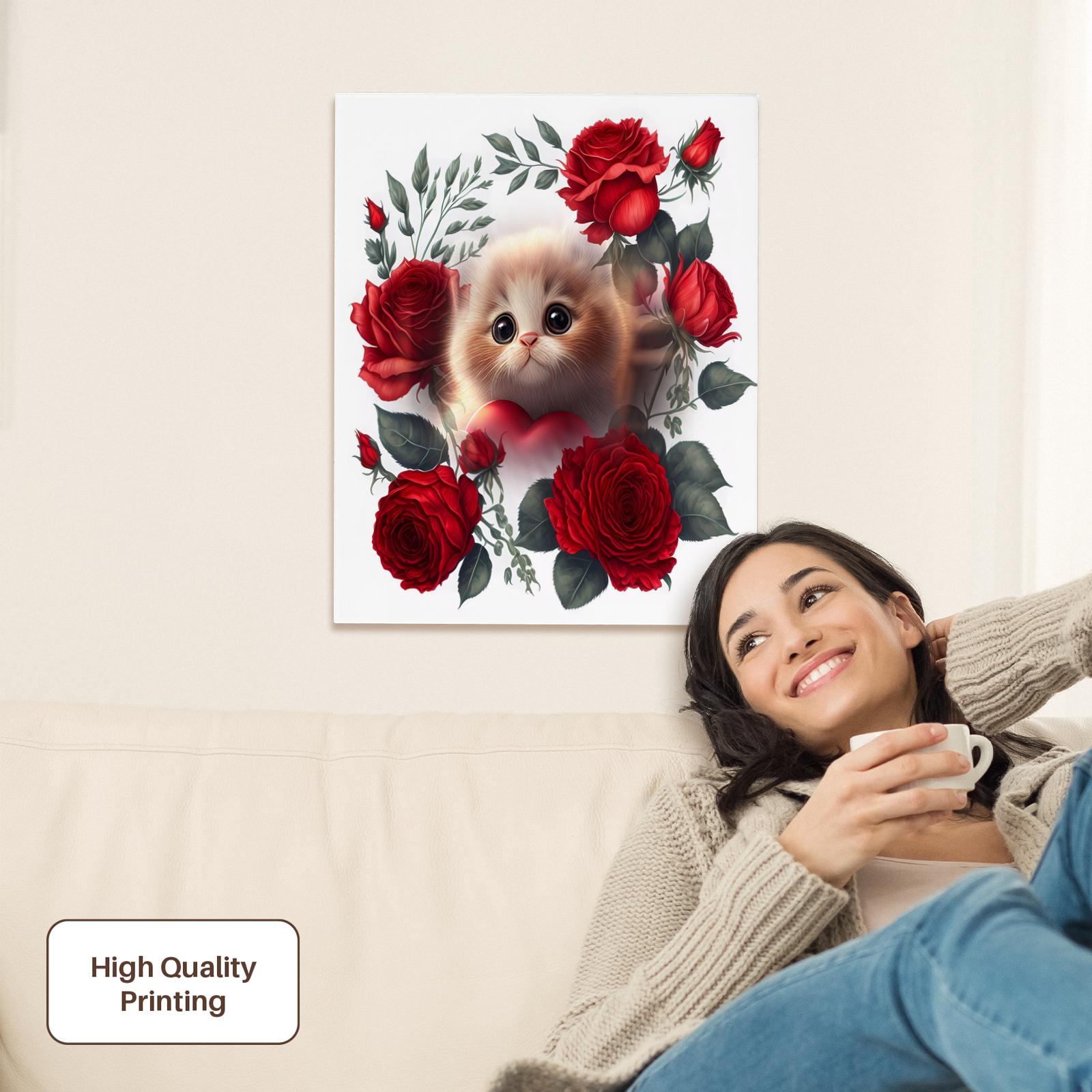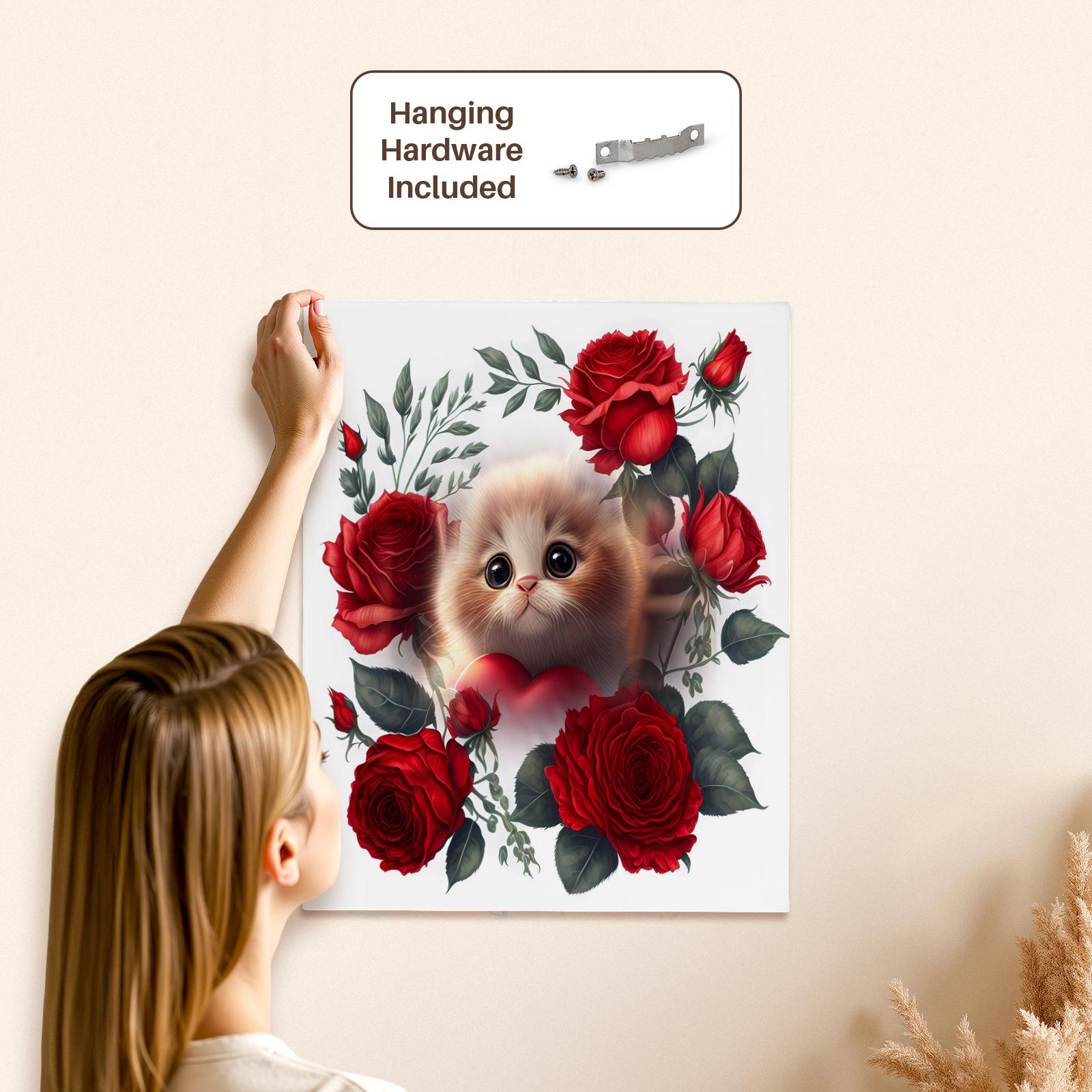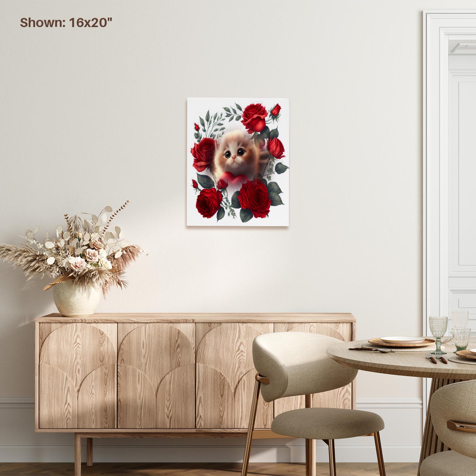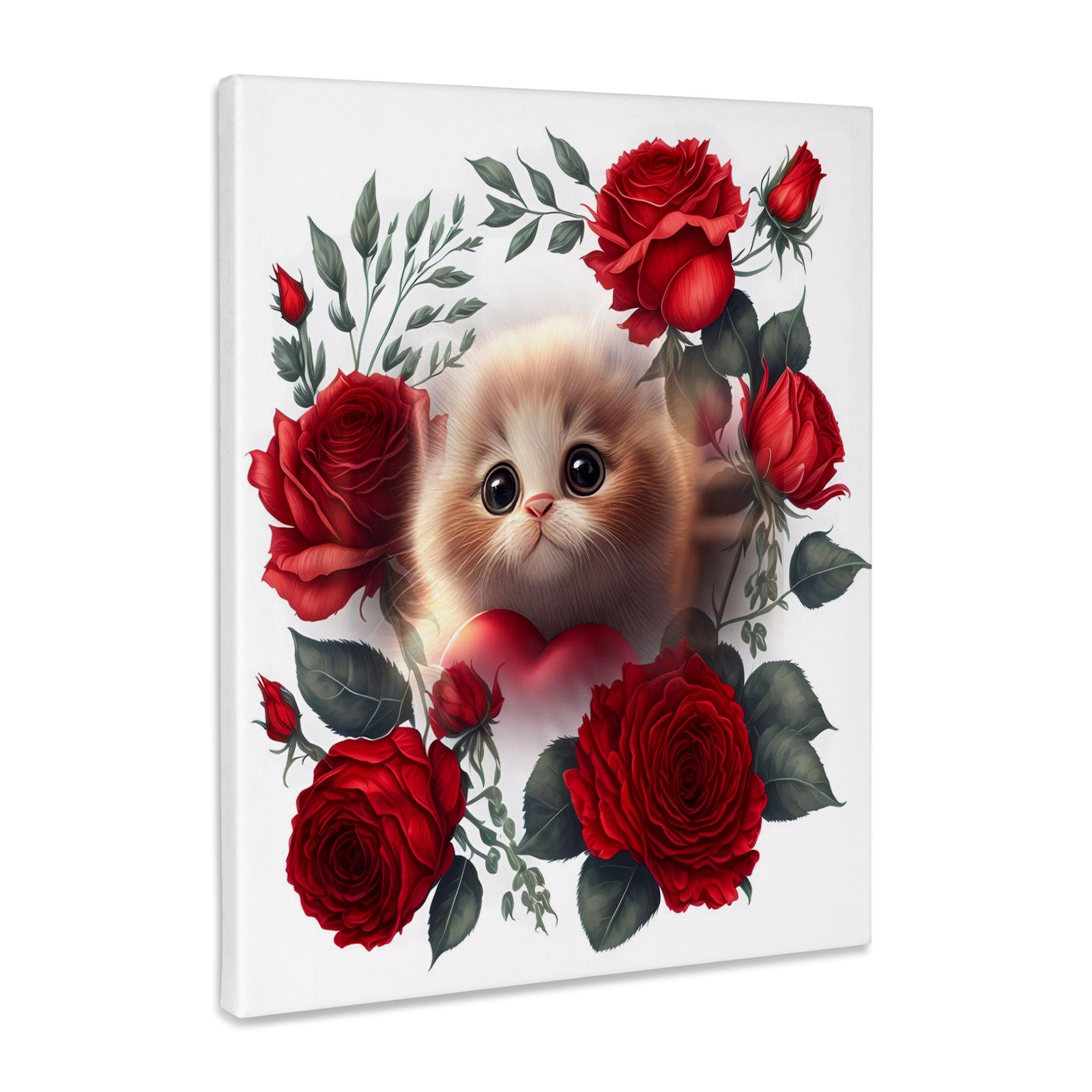 3dRose Red roses and beautiful cat a purrrfect gift - Museum Grade Canvas Wrap (cw-384397)