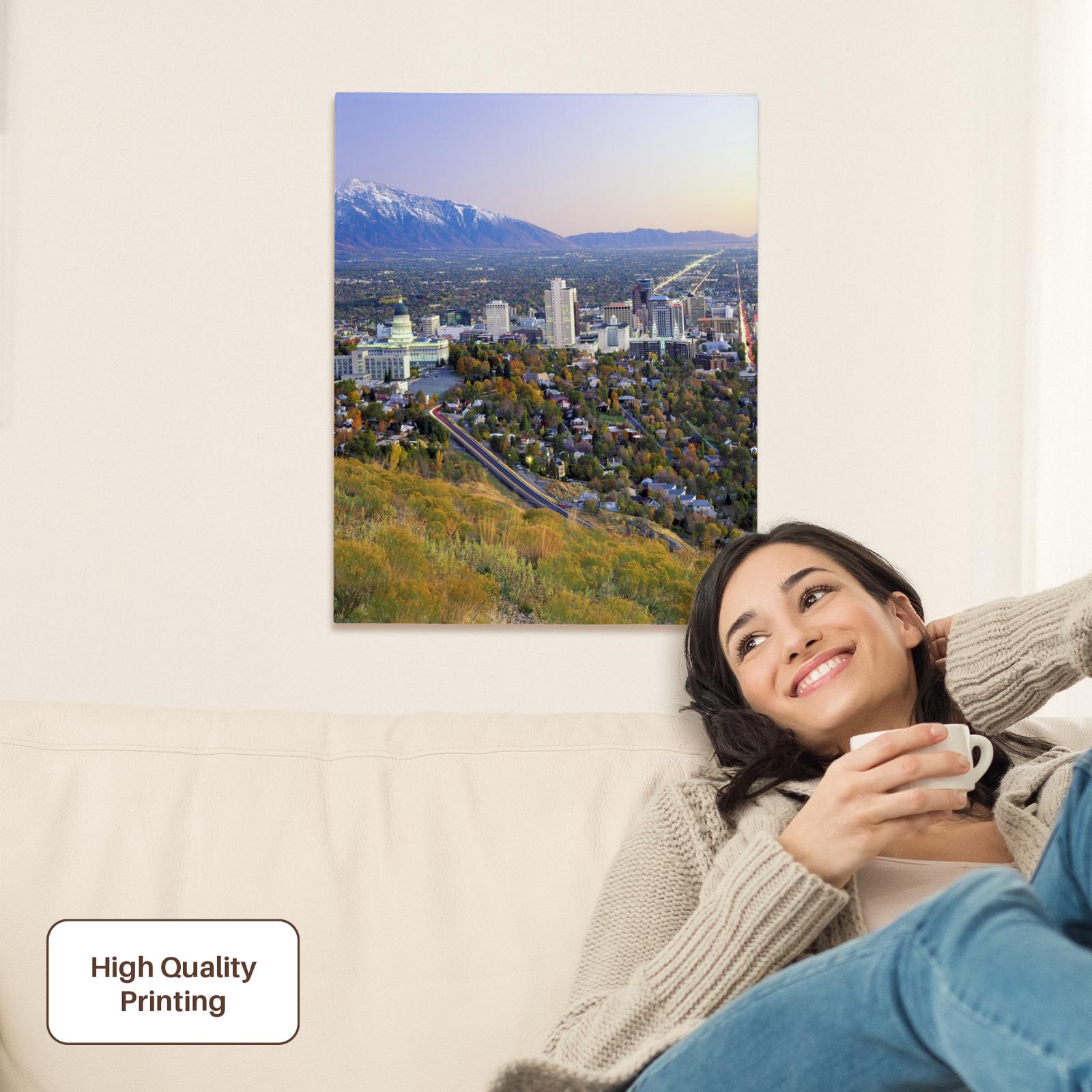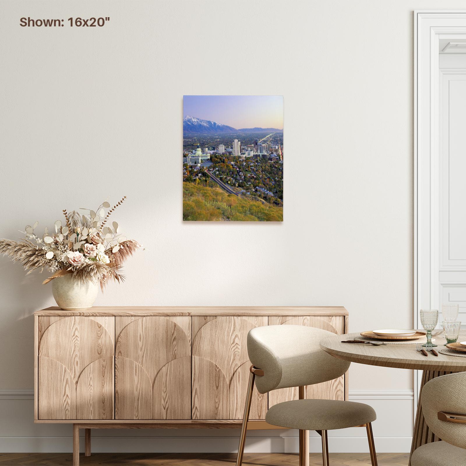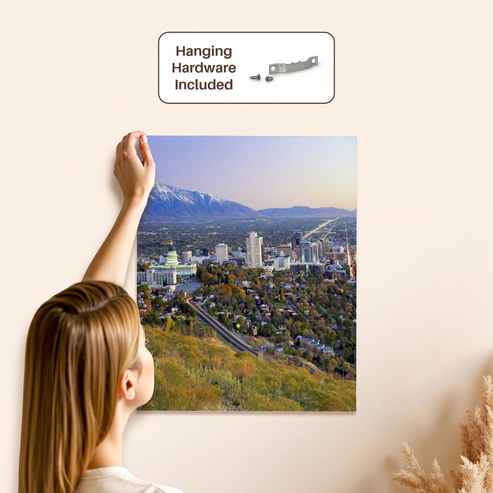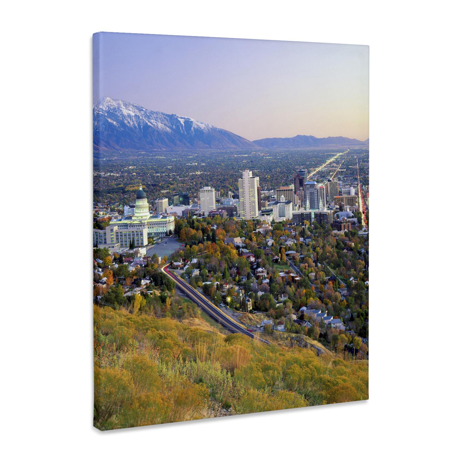 Salt Lake City and Valley, Wasatch Mountains, Utah - US45 SSM0147 - Scott T. Smith Museum Grade Canvas Wrap is taking the printmaking world by storm with visually stunning color reproduction and long lasting archival properties. Known industry-wide for its consistency, premium canvas wrap exhibits exceptional quality utilizing ultra-high definition printing. Professionally stretched over a sturdy 1.2" wooden frame this canvas wrap will last a lifetime. Canvas Wraps offer a beautiful addition to your wall art collection. Unlike traditional photographs and prints our high quality canvas material has a UVA-protected coating that prevents fading. 3dRose canvas wrap is well suited as a personal home decor, that can be used in your living room, bedroom, kitchen, bathroom, or office. Great as a personalized memories gift at a wedding, anniversary, birthday, or any other event worth remembering which will be cherished for a lifetime. 3dRose canvas wrap is proudly manufactured in USA offering unmatched quality.