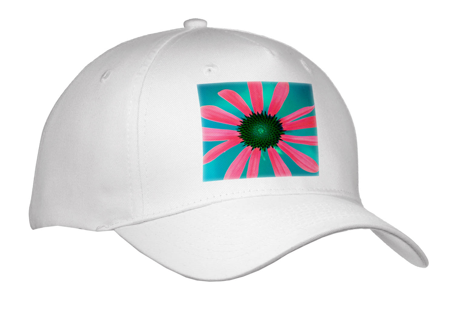 3dRose Abstract Photograph of a neon Pink coneflower on a Teal Background. - Caps (Cap_336685)