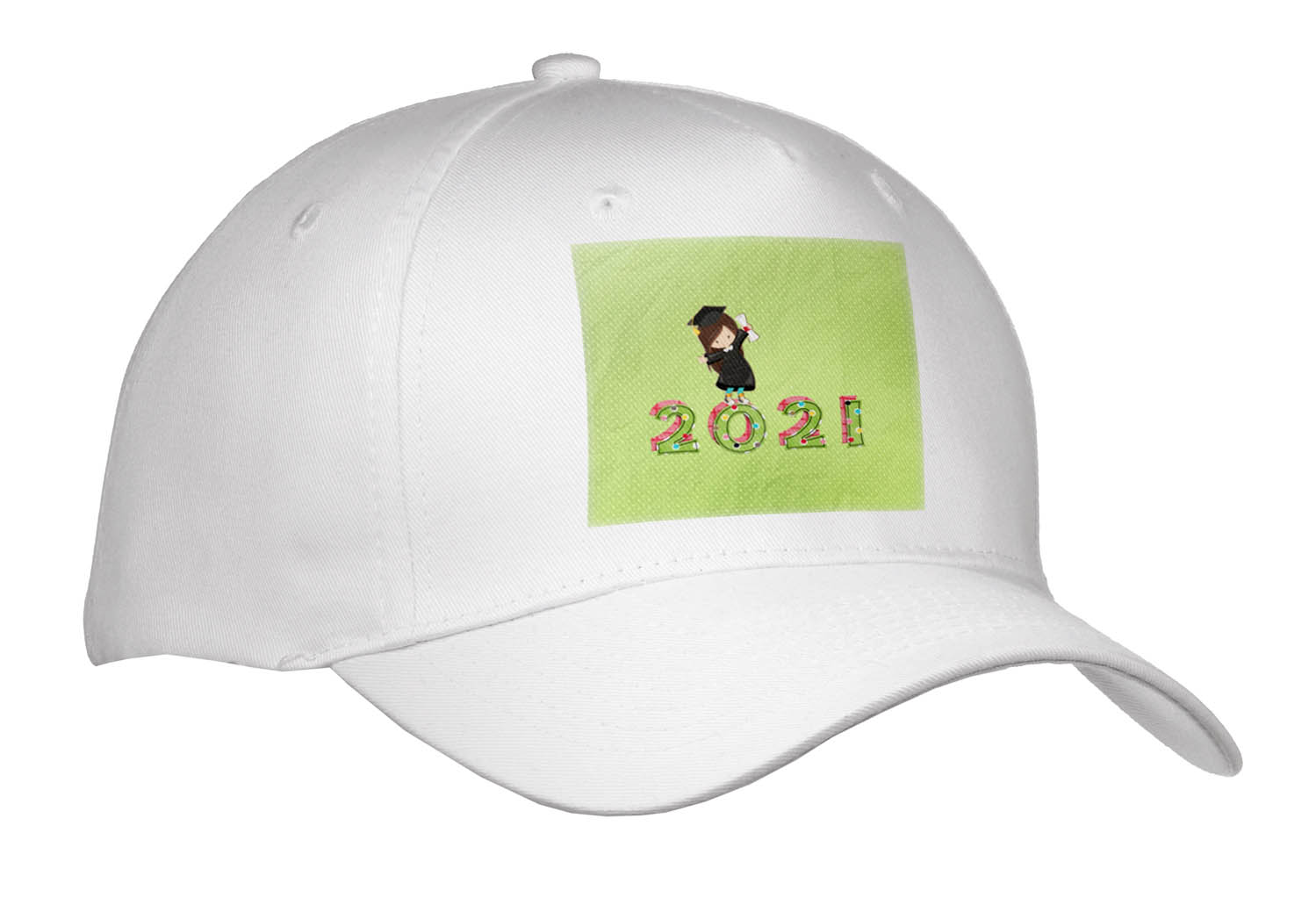3dRose Image of Cute Girl Graduate and Diploma on Dotted 2021, Green, Pink - Caps (Cap_336622)