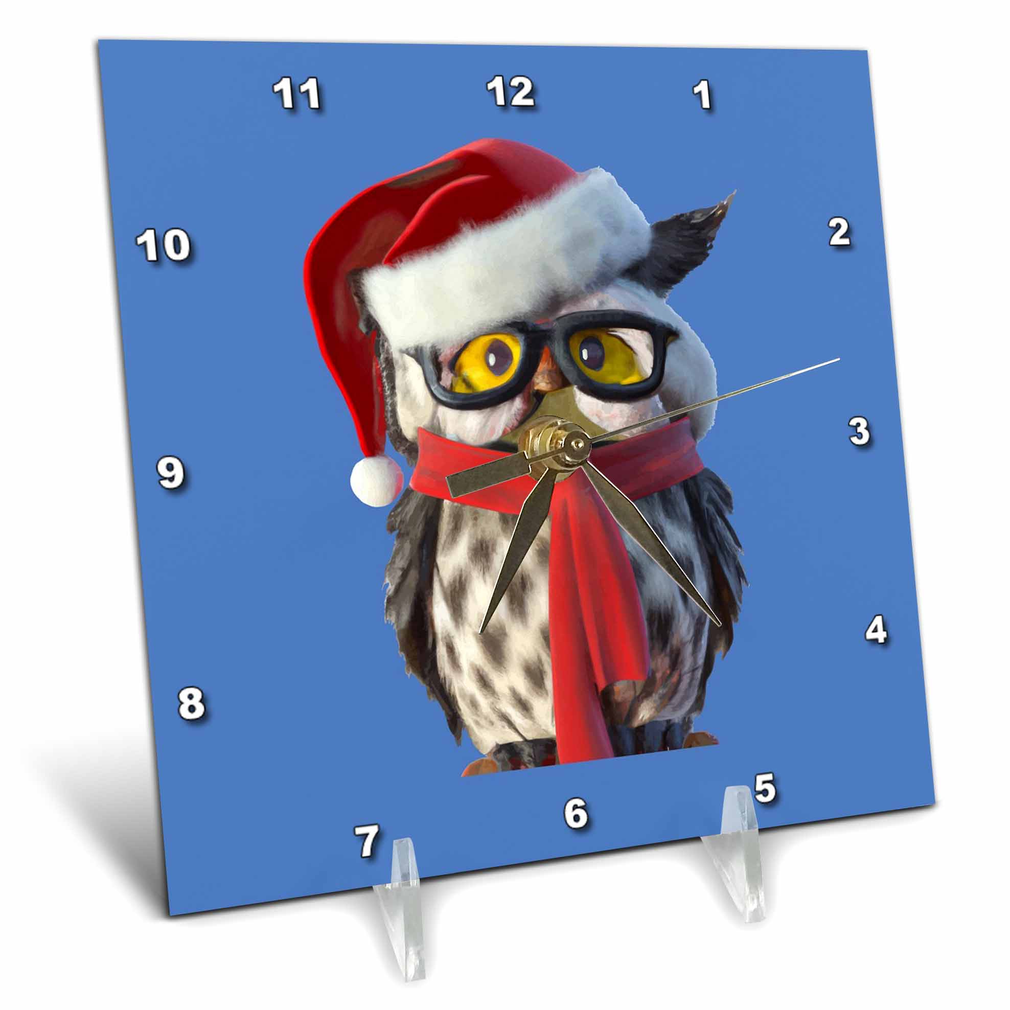 Desk Clock - Christmas Owl Wearing Santa Costume and Red Scarf Vector Vector Art - Christmas Owl