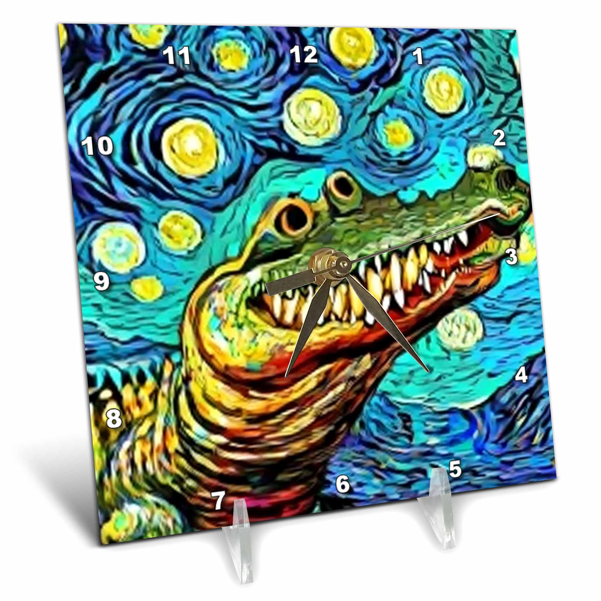 Desk Clock - Cool Colorful Alligator Head in Van Gogh Starry Night Style Nature Art Animals